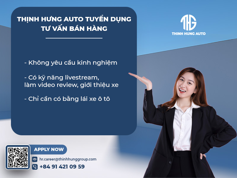 - Không yêu cầu kinh nghiệm về lĩnh vực ô tô, có kinh nghiệm bán hàng trực tiếp.